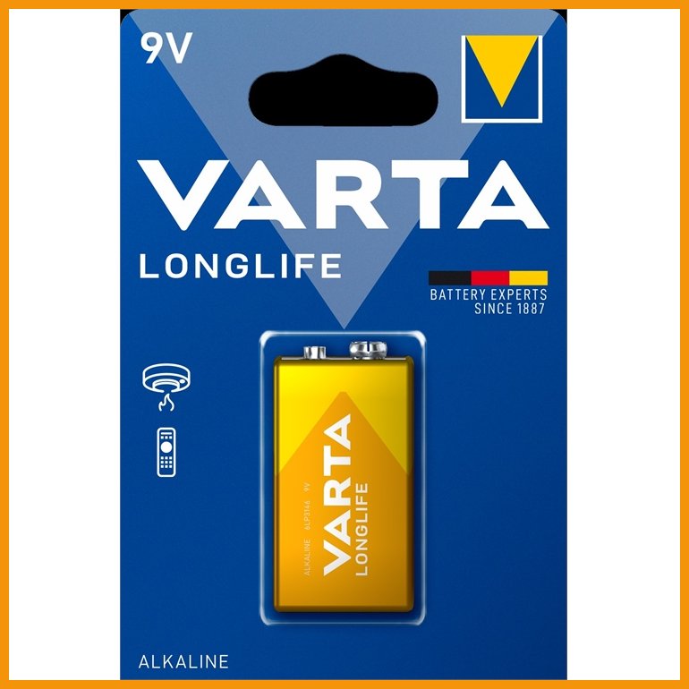 Varta Longlife -alkaliparistot ovat pitkäkestoinen valinta laitteisiin, joissa on jatkuva matalan virran tarve, kuten herätyskelloihin, radioihin, palovaroittimiin, kaukosäätimiin tai musiikkijärjestelmiin. Varastointiaika on 5 vuotta.Koko: 9V/6LR61