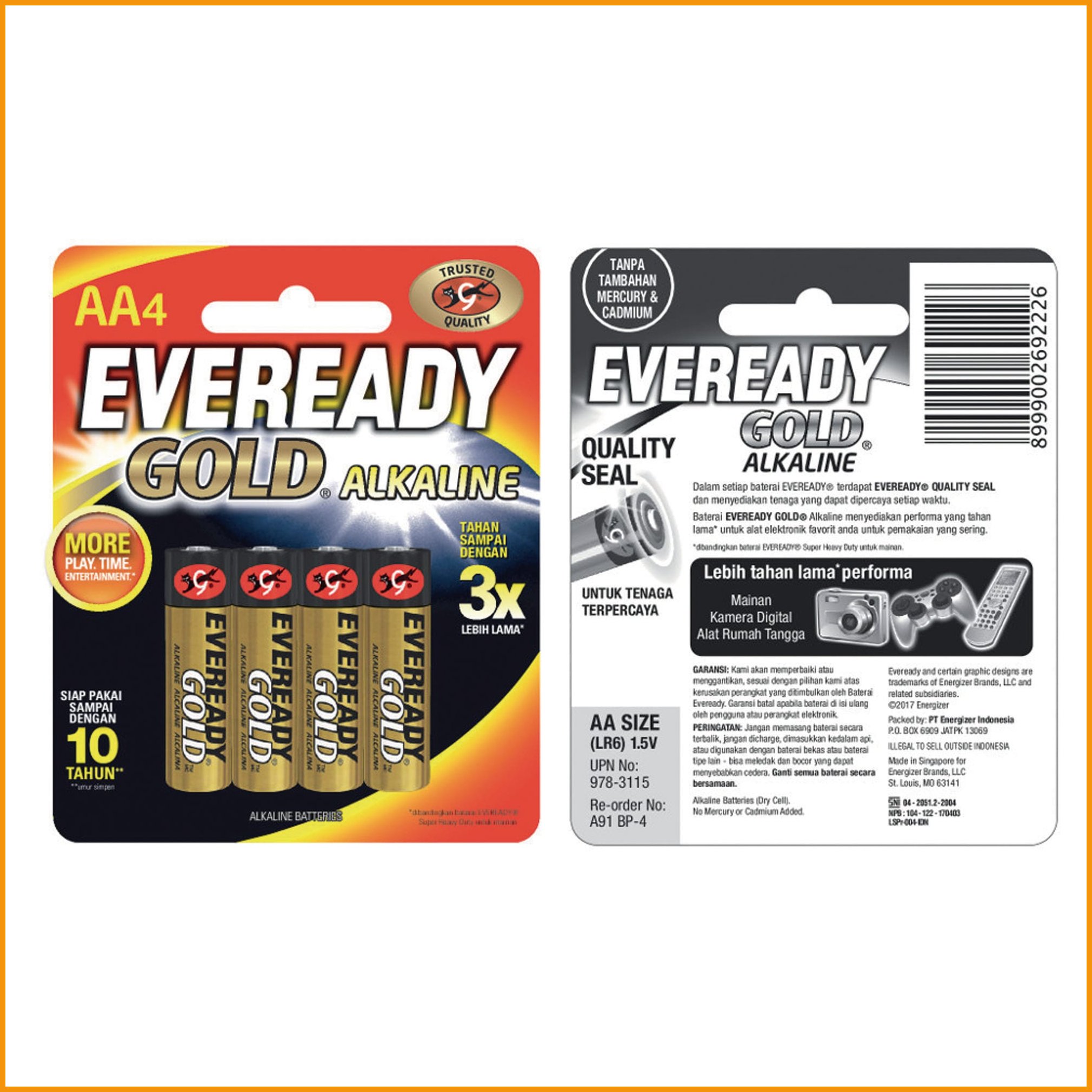 AA paristo 1.5 V LR06 Eveready gold 4kpl on laadukas toimistotarvike, jonka verkkokaupan tilauksen toimitus kestää 1-2 päivää. Muistathan, että toimitus on ilmainen yli 140 € hintaisille verkkokauppa ostoksille! Meiltä voit tilata laskulla ja ilman rekisteröitymistä.