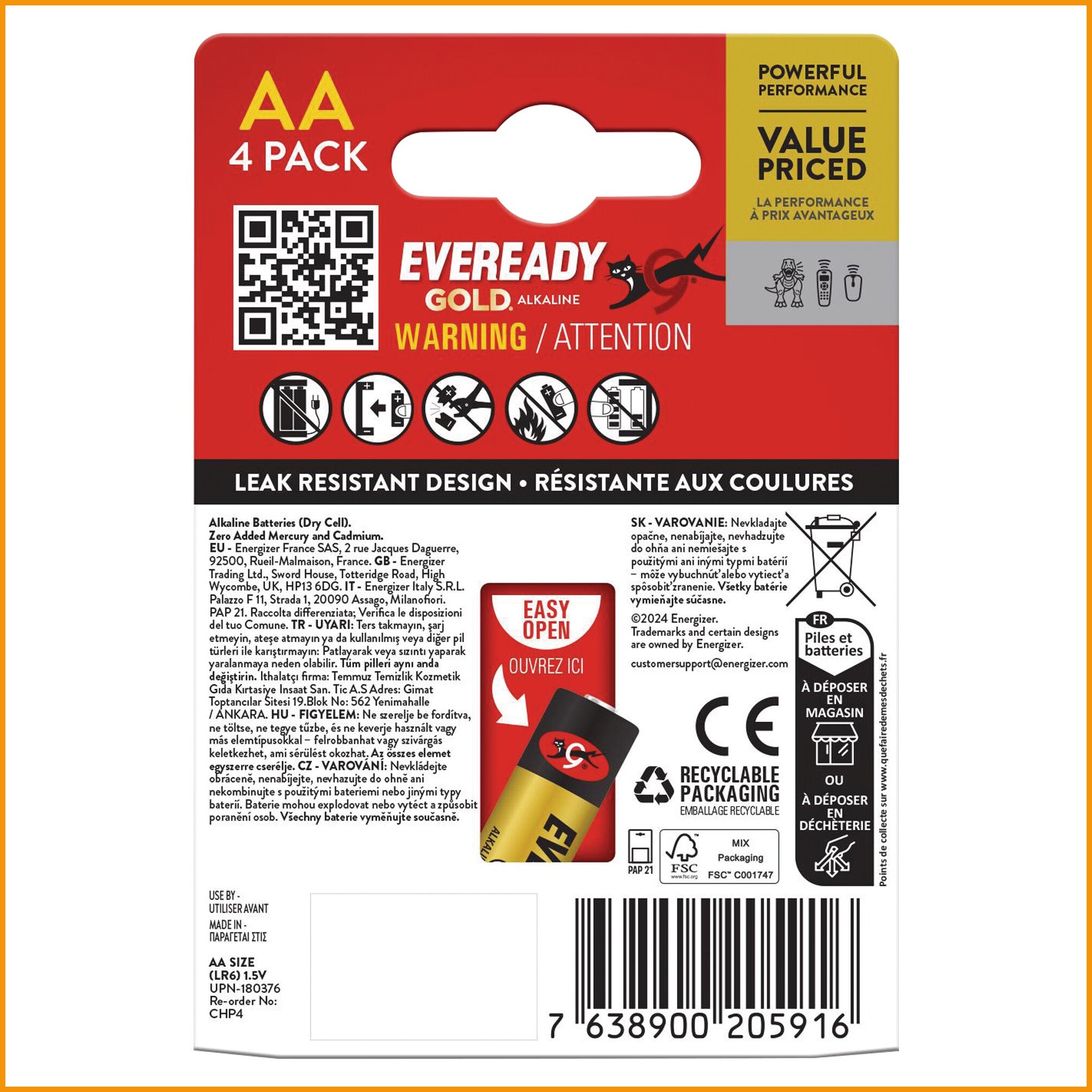 AA paristo 1.5 V LR06 Eveready gold 4kpl tuotetiedot
