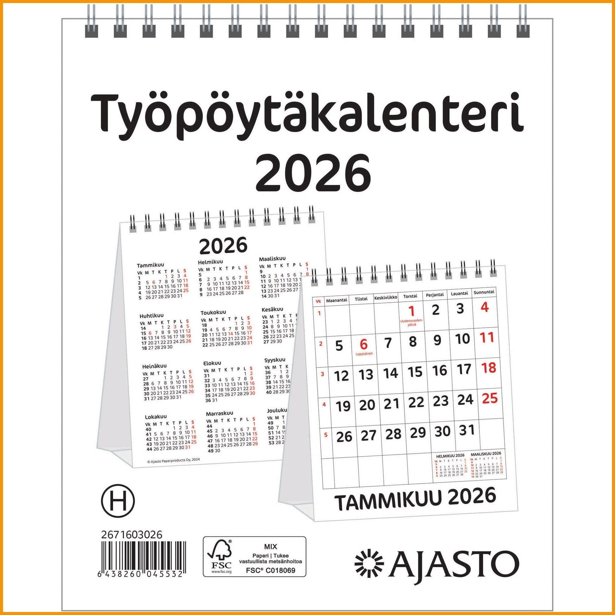 Ajasto työpöytäkalenteri 2026 hinta 9,57€