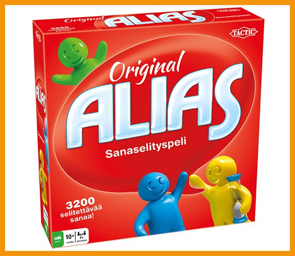 Aitoa ja alkuperäistä Aliasta pelataan joukkueessa, ja ensimmäinen joukkue maalissa voittaa. Pelissä on 3200 selitettävää sanaa, joten pelattava ei lopu aivan hetkessä. Pelaajat voivat aina oppia lisää ja parantaa suoritustaan.Alias ORIGINAL (FI)10+ on hyvä askartelutarvike, jonka verkkokauppatilauksen toimitus perille kestää 1-2 päivää. Muistathan, että toimitus on ilmainen yli 140 € hintaisille verkkokauppa ostoksille! Meiltä voit tilata laskulla ja ilman rekisteröitymistä.