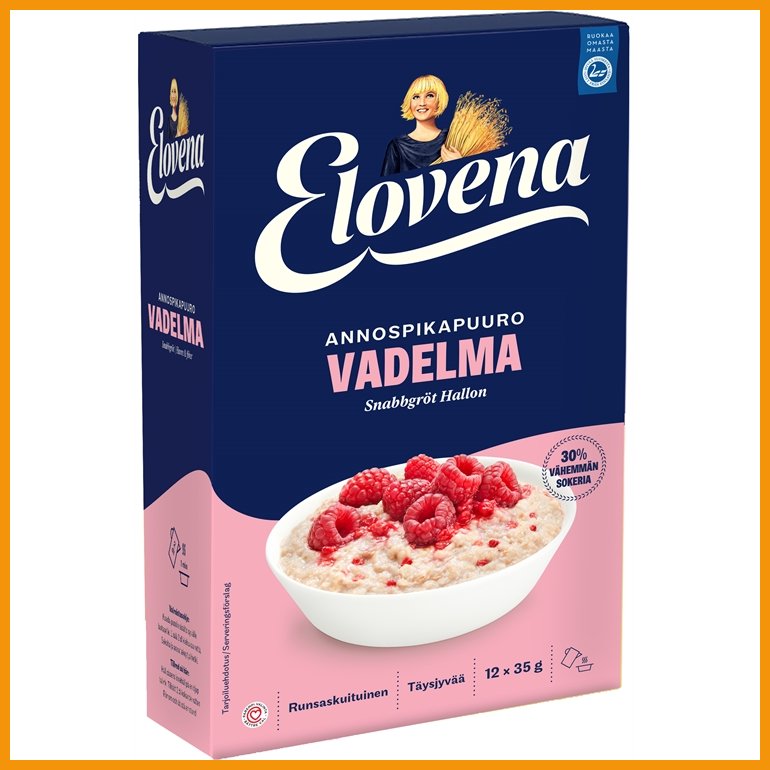 Annospikapuuro Elovena Vadelma 12 x 35 g hinta 7,98€