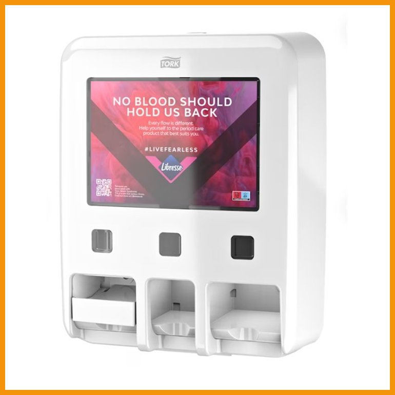 Tork kuukautissuoja-annostelija on tyylikäs ja huomaamaton ratkaisu, joka tukee työpaikan hygieniaa, tasa-arvoa ja hyvinvointia. Annostelija mahdollistaa kuukautistuotteiden helpon saatavuuden saniteettitiloissa ja osoittaa aitoa huolenpitoa työntekijöistä sekä vierailijoista.Kompakti mutta suuren kapasiteetin annostelija sopii yhteen Tork Elevation -sarjan muiden saniteettitilaratkaisujen kanssa. Yhteensopiva Libresse-täyttöpakkausten kanssa ja suunniteltu sisältämään useita eri tuotetyyppejä, kuten kuukautissuojia, tamponeja ja pikkuhousunsuojia.