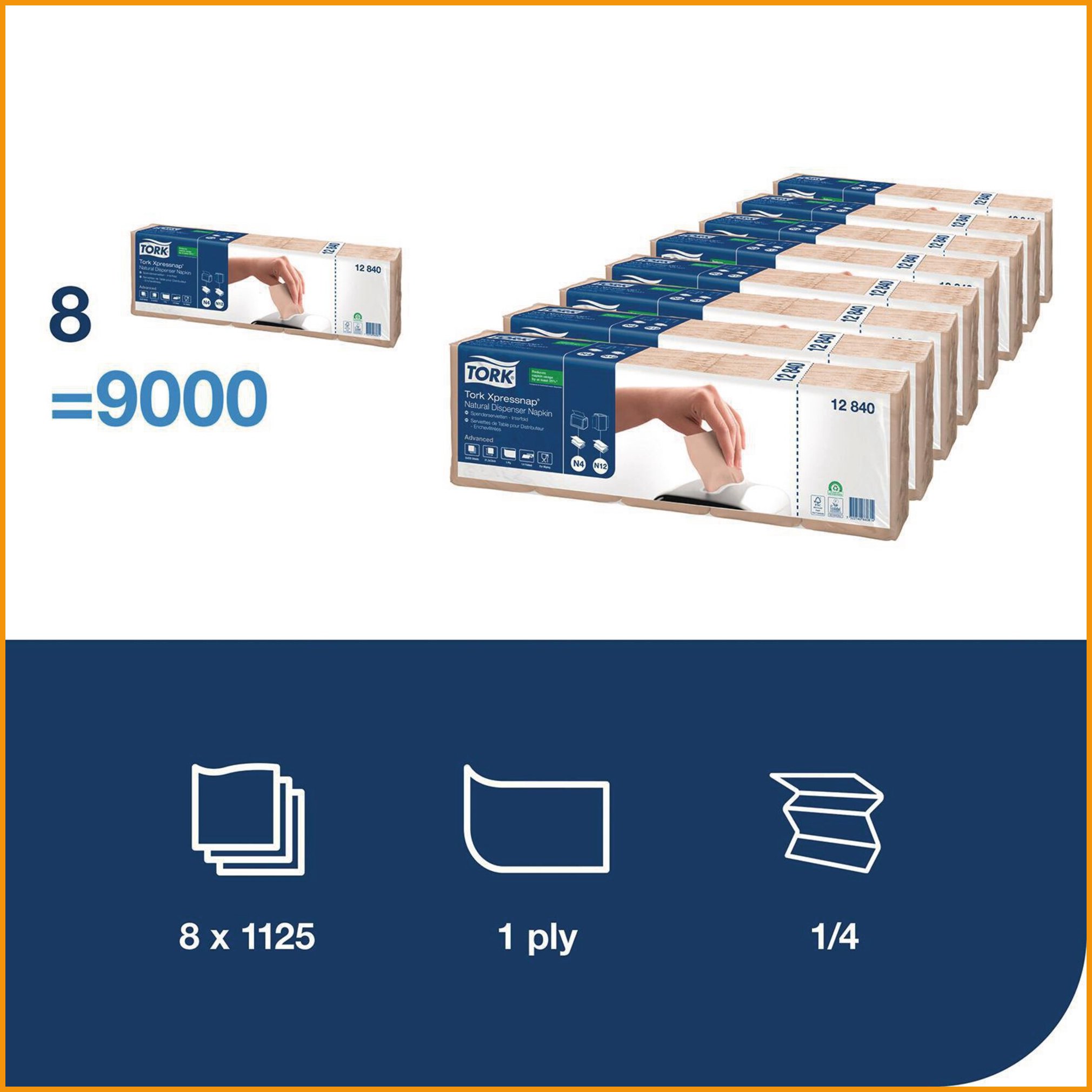 Annostelijaliina Tork® xpressnap® natural n4 12840 1125kpl tuotetiedot