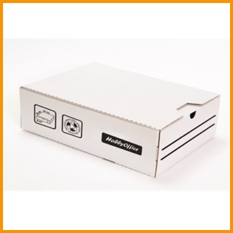 Arkistolaatikko on perinteinen tapa järjestää ja arkistoida kirjanpitoaineisto ja muut tärkeät dokumentit. Laatikko on tukevaa, valkoista aaltopahvia.Koko: A4