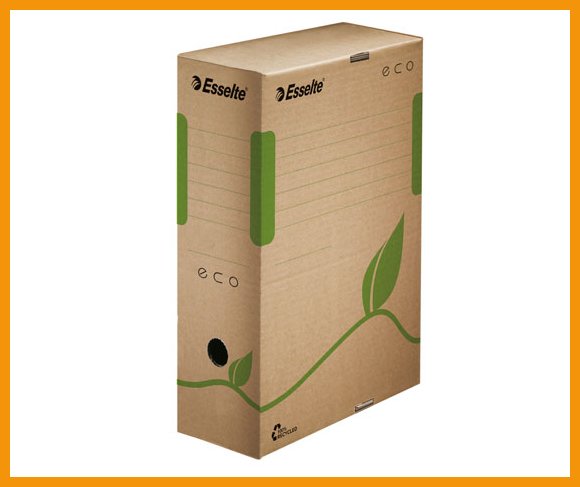 Esselte Eco on 100-prosenttisesti kierrätetystä kartongista valmistettu arkistolaatikko, jonka avulla järjestät ja säilytät kirjanpitoaineistot tai muut tärkeät dokumentit. Valkaisemattomasta paperista valmistettu ja vesipohjaisella maalilla värjätty laatikko on FSC-sertifioitu. Tuote toimitetaan kokoamattomana.Koko: A4