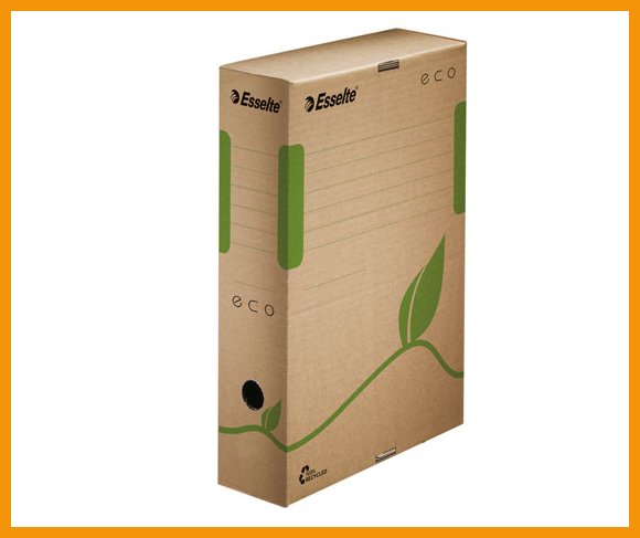 Esselte Eco on 100-prosenttisesti kierrätetystä kartongista valmistettu arkistolaatikko, jonka avulla järjestät ja säilytät kirjanpitoaineistot tai muut tärkeät dokumentit. Valkaisemattomasta paperista valmistettu ja vesipohjaisella maalilla värjätty laatikko on FSC-sertifioitu. Tuote toimitetaan kokoamattomana.Koko: A4