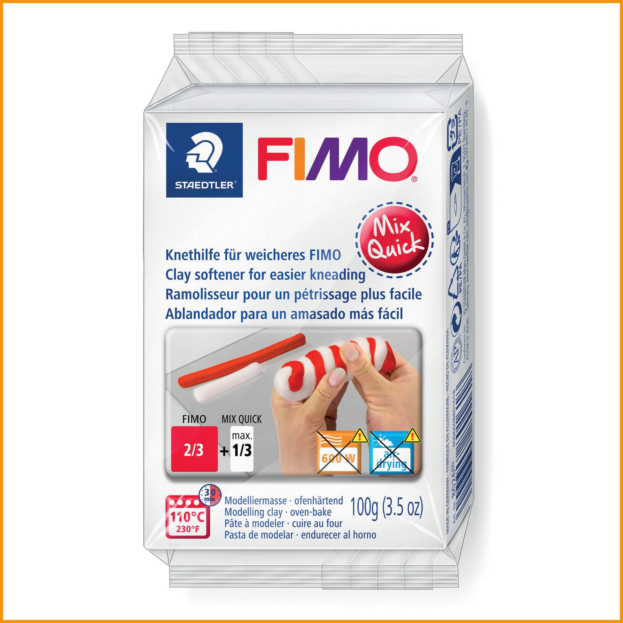Erittäin pehmeä muovailumassa Fimon käsittelemiseen. Tekee kiinteästä Fimosta helposti käsiteltävää. Kestää jopa 110c uunissa. Myyntierä: 1 kpl.Askartelumassa Staedtler fimo mix quick 100g on hyvä askartelutarvike, jonka verkkokauppatilauksen toimitus perille kestää 1-2 päivää.