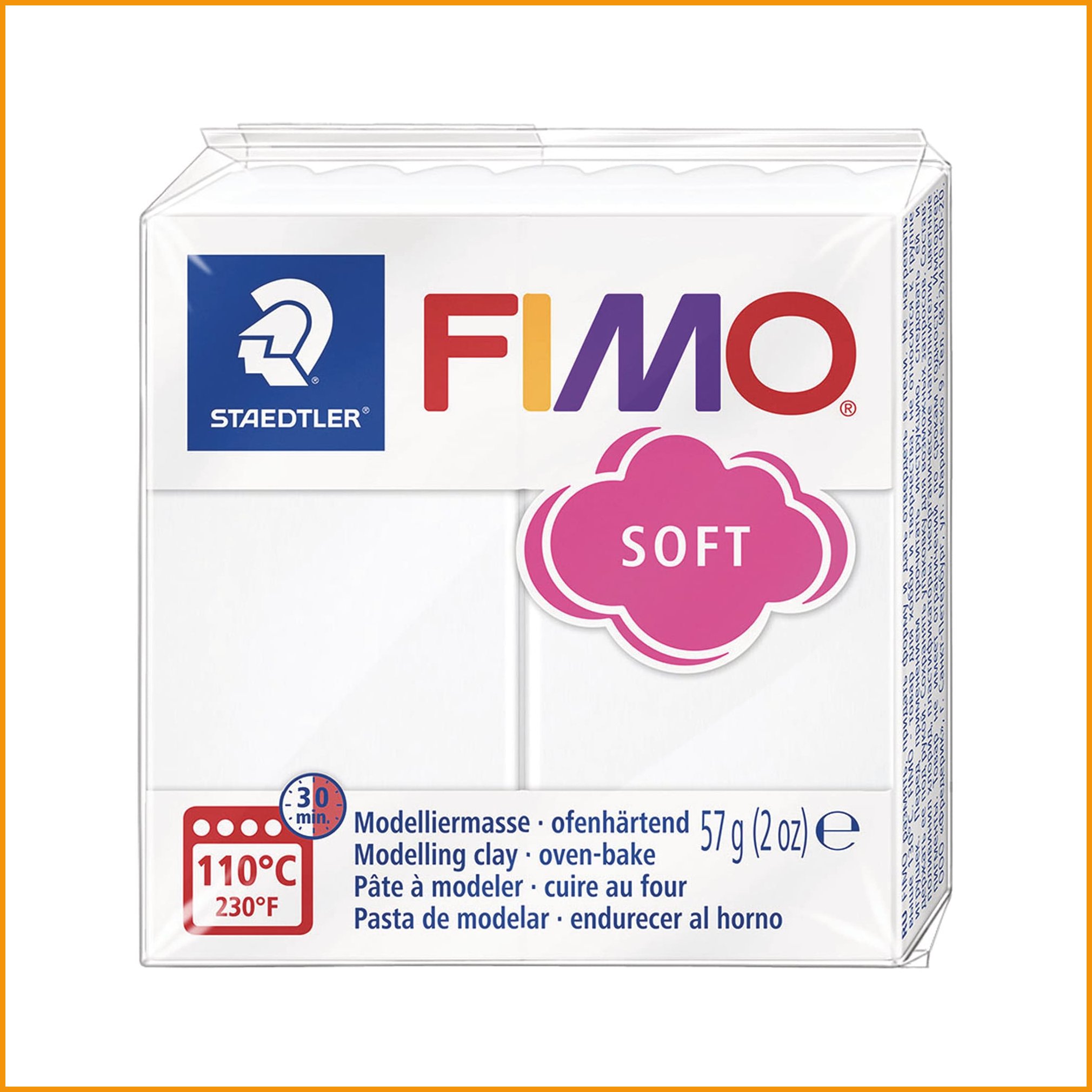 Askartelumassa valkoinen Staedtler Fimo on kotiuunissa kovetettava muovailumassa. Massa kovetetaan 110 °C lämpötilassa 30 minuutin ajan. Värinumero: 39.Askartelumassa Staedtler fimo valkoinen on mainio askartelutarvike, jonka verkkokaupan tilauksen toimitus kestää 1-2 päivää.