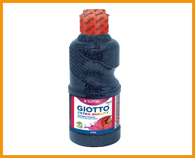 Giotto Glitter Paint on kimaltava, Redimix-tyyppinen askarteluväri. Glitterin värisessä pohjageelissä on pieniä ja iloisesti kimaltavia glitterpaljetteja, jotka saavat taiteen säihkymään. Pullossa on näppärä annostelukorkki ja hyvän otteen antava kädensija. Vesipohjaiset ja lapsiturvalliset värit peseytyvät helposti käsistä saippualla ja lämpimällä vedellä, tai vaatteista 40 °C konepesussa.Pakkauskoko: 250 ml