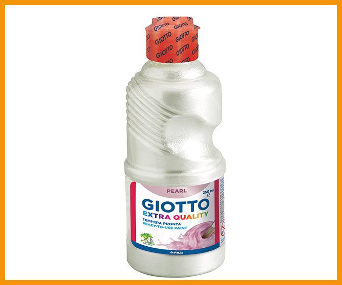 Giotto Pearl Paint on Redimix-tyyppinen, heti käyttövalmis askarteluväri upealla helmiäishohteella. Hyvin peittävä väri jättää kuivuttuaan himmeän pinnan. Pullossa on näppärä annostelukorkki ja hyvän otteen antava kädensija. Vesipohjaiset ja lapsiturvalliset värit peseytyvät helposti käsistä saippualla ja lämpimällä vedellä, tai vaatteista 40 °C konepesussa.Pakkauskoko: 250 ml