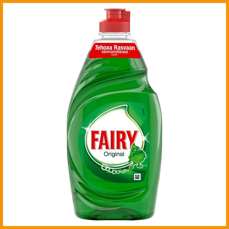 Fairy Original on kaikille tuttu astianpesuaine, joka soveltuu yhtä lailla koti- kuin ammattikäyttöönkin. Erittäin tehokas ja runsaasti vaahtoava astianpesuaine pilkkoo rasvaa nopeasti ja tekee astioista hohtavan puhtaita jopa viileällä vedellä pestäessä. Fairy on erityisen riittoisaa: tiivistetyn koostumuksen ansiosta jo tippa ainetta riittää.Pakkauskoko: 400 ml