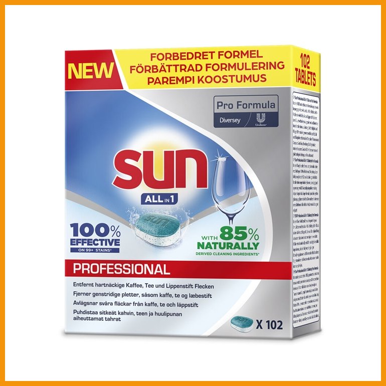 Astianpesutabletti Sun Pro Formula/102 on laadukas tiskinpesuaine, jonka verkkokauppatilauksen toimitus perille kestää 1-2 päivää. Huomaa, että ilmainen toimitus on kaikilla yli 140 € hintaisilla tilauksilla! Meiltä voit tilata laskulla ja ilman rekisteröitymistä.