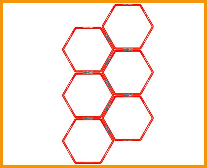 Kuusikulmaiset askelrenkaat voidaan muotoilla eri muotoihin. Yhden renkaan halkaisija on 50 cm. Sarja sisältää 6 rengasta.