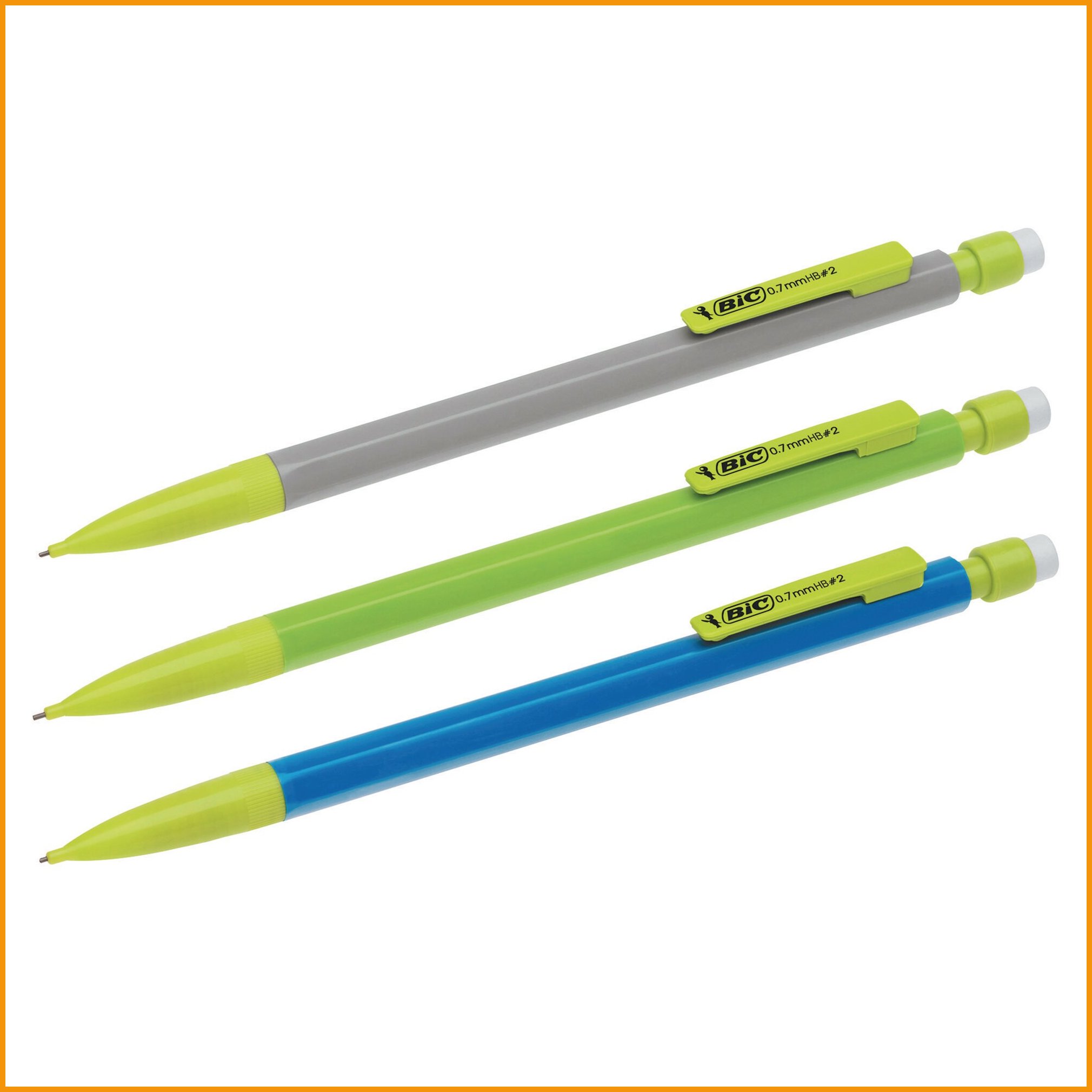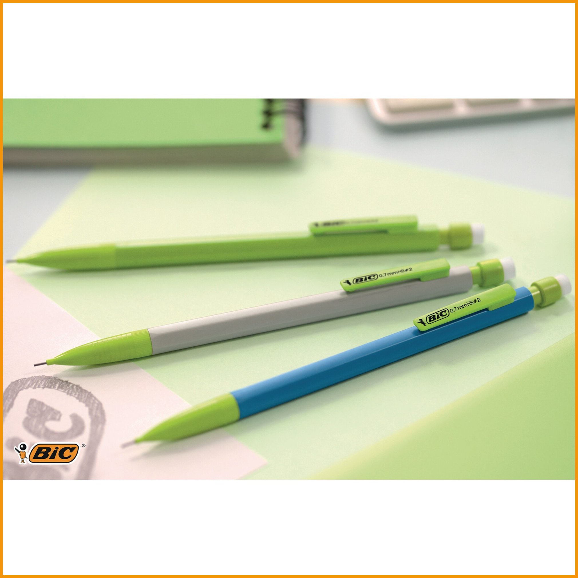 Bic matic ecolutions -lyijytäytekynä sopii luonnonystävän käteen, sillä kynä on valmistettu 65-prosenttisesti kierrätysmateriaaleista. kynässä on valmiina neljä 90 mm lyijyä, joilla on kirjoituspituutta jopa 10 km. pakkauksessa on 50 kynää kolmen värin lajitelmana (sininen, harmaa, vihreä). 0,7 mm lyijyä käyttävän kynän päässä on pyyhekumi ja klipsi. Lyijytäytekynien minimitilaus 1 paketti = 50 kpl. Tukkupakkauksessa 20 pakettia.Lyijytäytekynät toimitetaan 50 kappaleen erissä.
