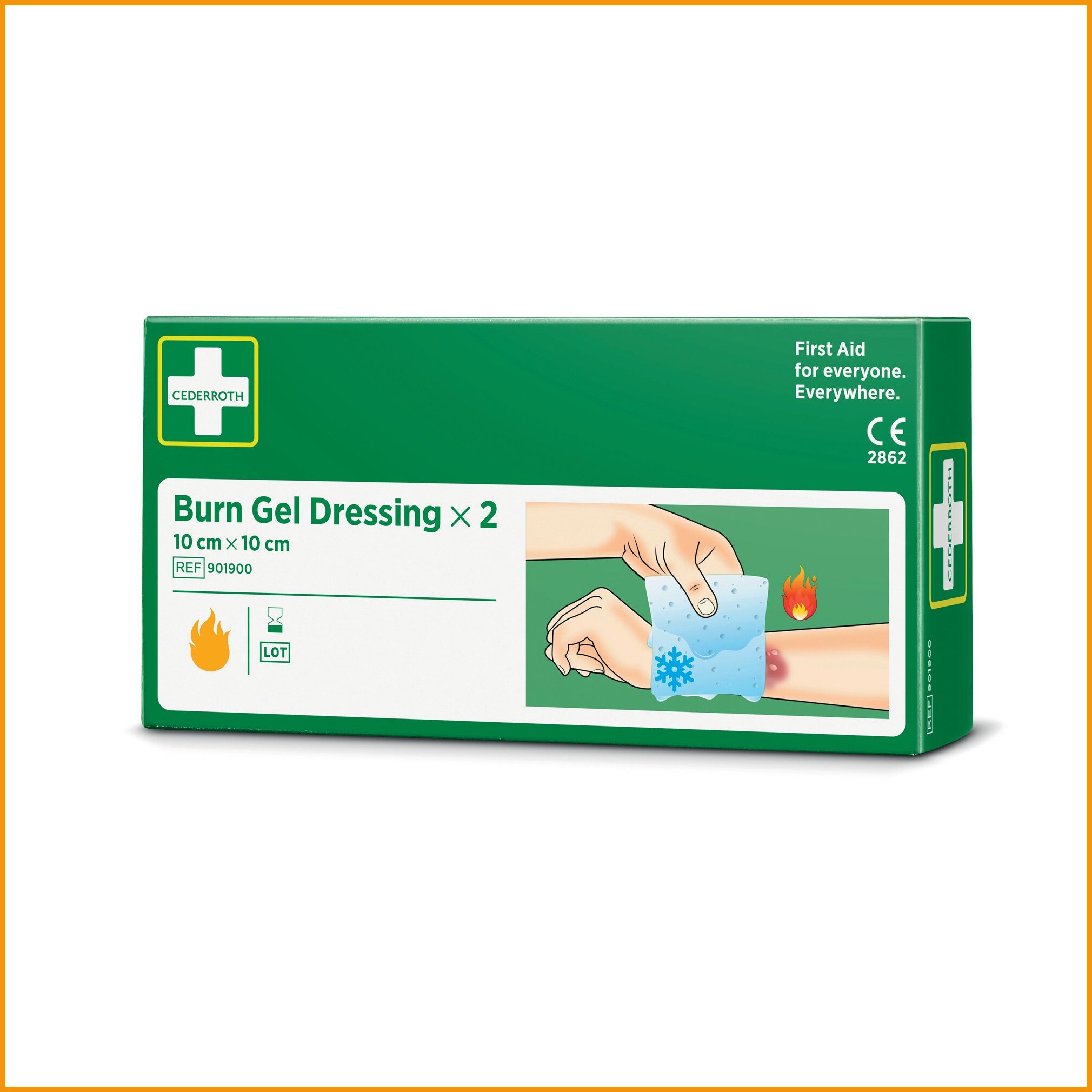 Palovammaside Cederroth 901900 Burn Gel täydennyspakkaus. Vesiliukoinen steriili Cederroth Burn Geeli viilentää palanutta kohtaa ja lieventää tehokkaasti kipua. Palovammasiteen koko 10 x 10 cm, 2 kpl/rasia, sisältää vesipohjaista (> 96 % vettä) geeliä. Palovammaside on kertakäyttöinen ja säilyy 5 vuotta.