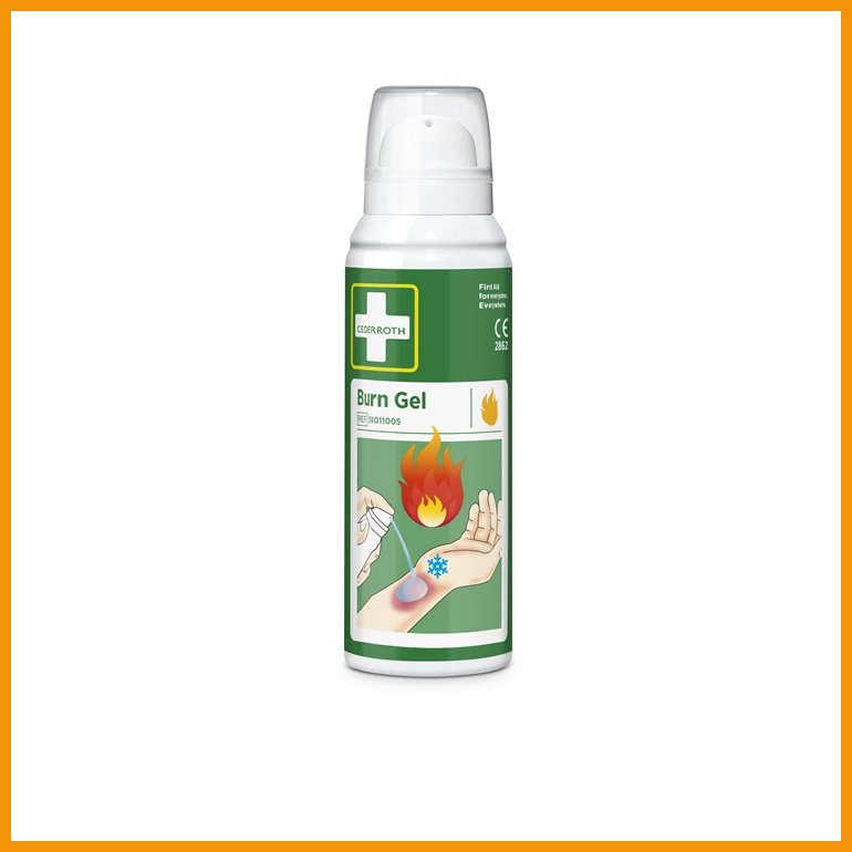 Cederroth Burn Gel on tehokkaasti kipua lievittävä hydrogeeli pienten palovammojen, auringonpolttamien, syöpymien ja säteilyvaurioiden ensiapuun. Viilentävä ja rauhoittava geeli estää palovamman etenemistä syvemmälle ihokudoksiin. Lapsillekin soveltuva geeli on helppo pestä pois vedellä. Ponnekaasulla toimiva suihkepullo pysyy käyttökelpoisena kolmen vuoden ajan, joten siitä riittää useampaankin hoitotapaukseen.Pakkauskoko: 100 ml