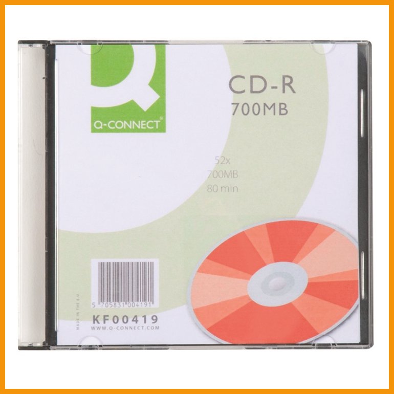 Q-Connectin CD-R-levyt tietojen varmuuskopiointiin ja arkistointiin. Levyt on pakattu ohuisiin 5 mm slimcase-koteloihin.Kapasiteetti: 700 MB