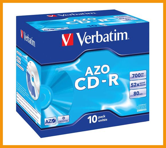 Verbatim AZO Crystal -CD-R-levyissä on erittäin korkean UV-suojauksen takaava AZO -kirjoituskerros ja naarmuja ehkäisevä pinnoitus.Kapasiteetti: 700 MB