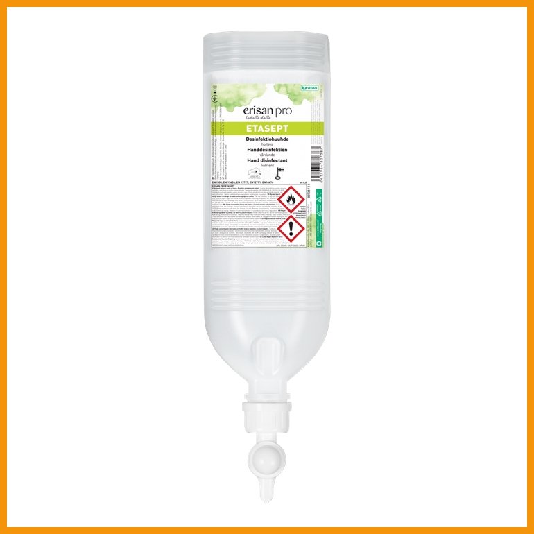 Erisan Pro Etasept on kevyesti geelimäinen desinfektiohuuhde käsille. Ammattikäyttöön tarkoitettu tuote tuhoaa tehokkaasti sekä bakteereita, homeita, hiivoja että viruksia. Desinfioiva aine on nopeasti haihtuva etanoli (73,5 p-%, 80 t-%). Huuhde sisältää myös runsaasti ihoa hoitavia ja kosteuttavia aineita.Tuotteen teho on todennettu seuraavin testein: EN 1500, EN 13727, EN 13624, EN 14476, EN 12791.