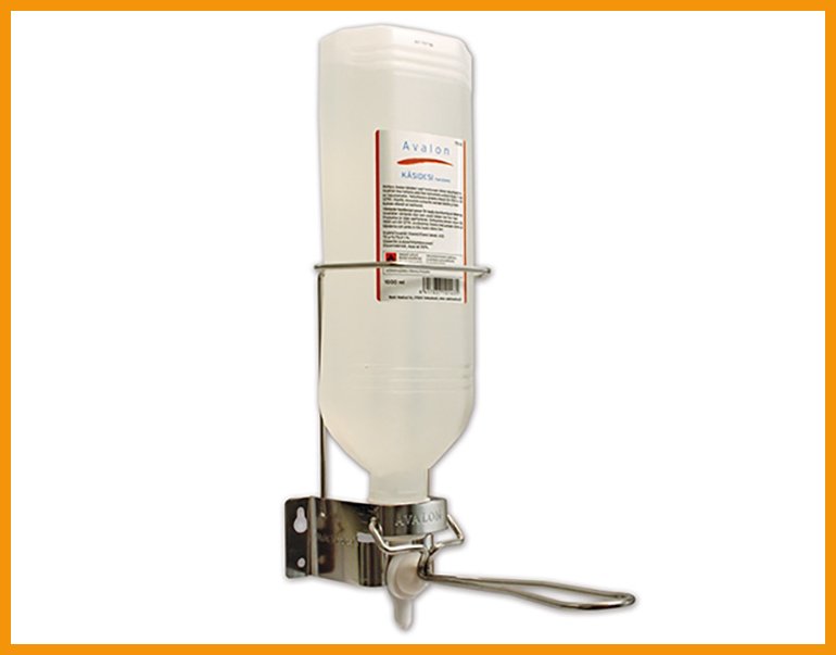 Avalonin seinään kiinnitettävässä dispensotelineessä on pitkä varsi (14 cm), jolla voi hoitaa annostelun hygieenisesti esimerkiksi kyynärpäällä painamalla. Ruostumattomasta teräksestä valmistettu teline sopii kaikille 1 litran dispensopakkauksille.Dispensoteline Avalon 1L pitkävartinen on korkeatasoinen puhdistusväline, jonka toimituksen kesto on verkkokaupasta tilattuna 1-2 päivää. Huomaa, että Toimitus on ilmainen kaikilla verkkokaupan ostoksilla, joiden hinta on yli 140 €. Meiltä voit tilata laskulla ja ilman rekisteröitymistä.