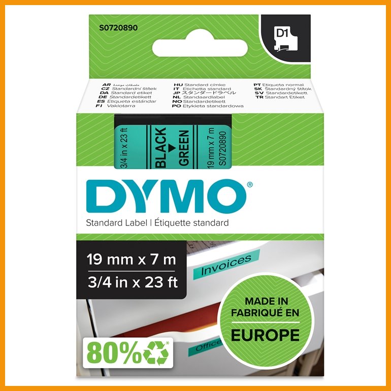 Dymo D1 Teippi 19 mm vihreä/musta hinta 29,10€