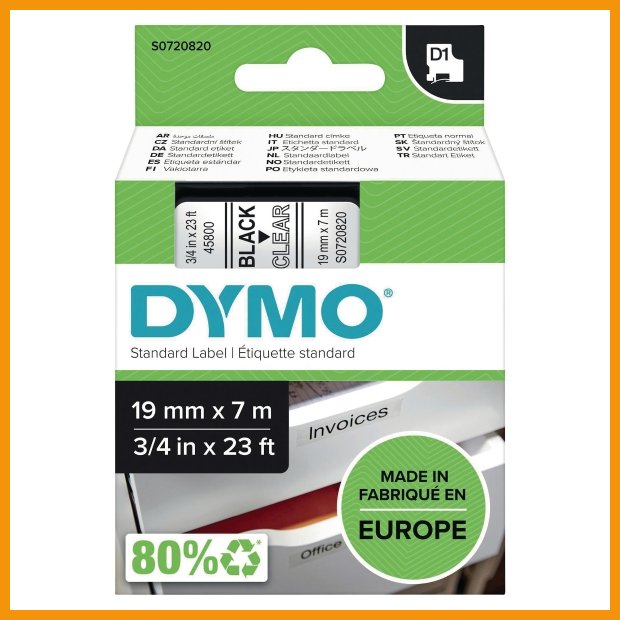 Dymo D1 Teippi 19mm x 7m musta/kirkas hinta 22,73€