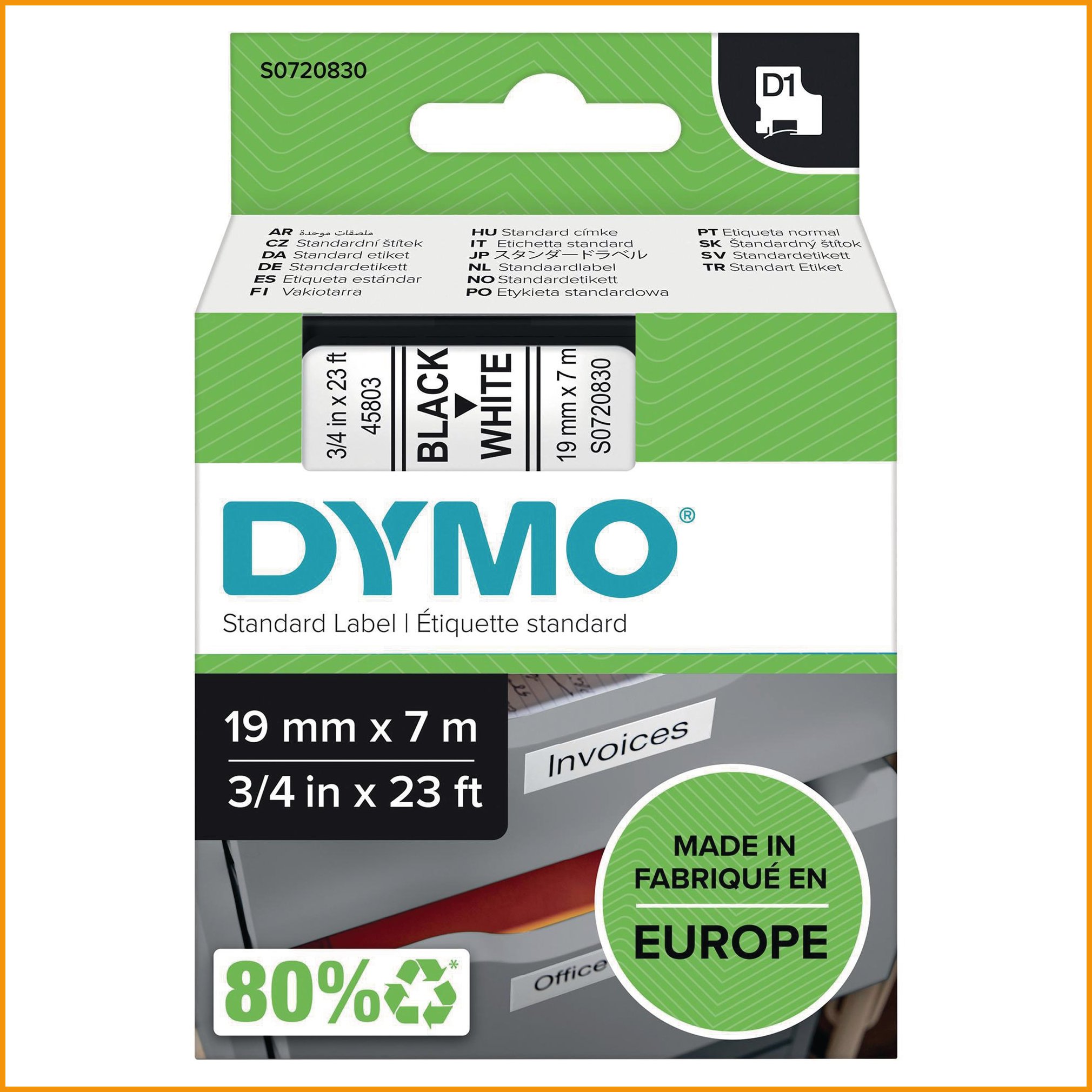 Dymo D1 Teippi 19mm x 7m musta/valkoinen tuotetiedot