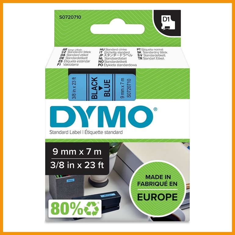 DYMO D1 -tarrakasetti LabelPoint-, LabelWriter Duo- ja LabelManager-tarrakirjoittimiin. Lämpösiirtomenetelmällä tulostettavat tarrat tarttuvat useimmille tasaisille ja puhtaille pinnoille. Tarrat kestävät erinomaisesti niin hankausta, kosteutta, auringonvaloa kuin äärilämpötilojakin.Tuote on valmistettu 80-prosenttisesti kierrätysmateriaalista. Pakkaus on FSC-sertifioitu.