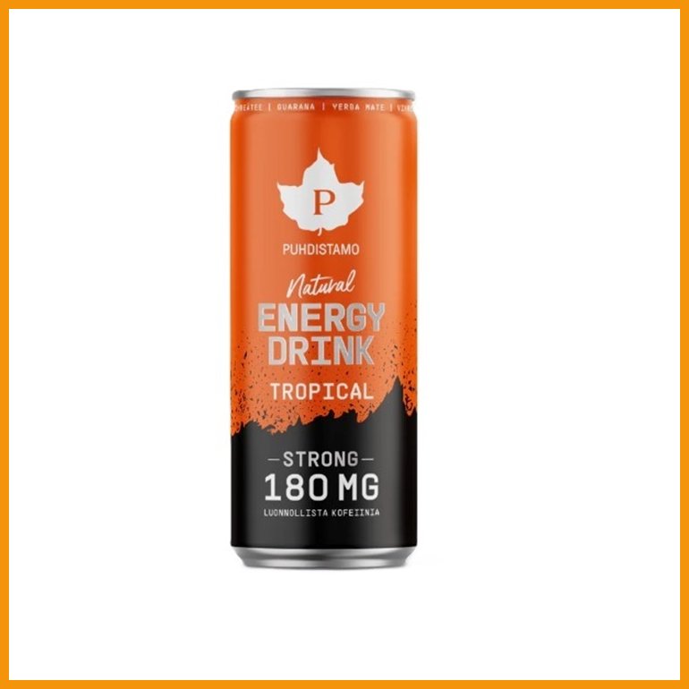 Natural Energy Drink Tropical Strong -energiajuomassa on jopa 180 milligrammaa luontaista kofeiinia.Lisää makeutta on saatu lisäämällä reseptiin pienen pieni määrä aitoa mehua, joka räjäyttää juoman makuprofiilin aivan uusiin sfääreihin. Muuten maku rakentuu tuttuun tapaan vain luontaisten aromien ja steviasta saatavien stevioliglykosidien ympärille. Eli tiukka EI keinotekoisille makeutusaineille!