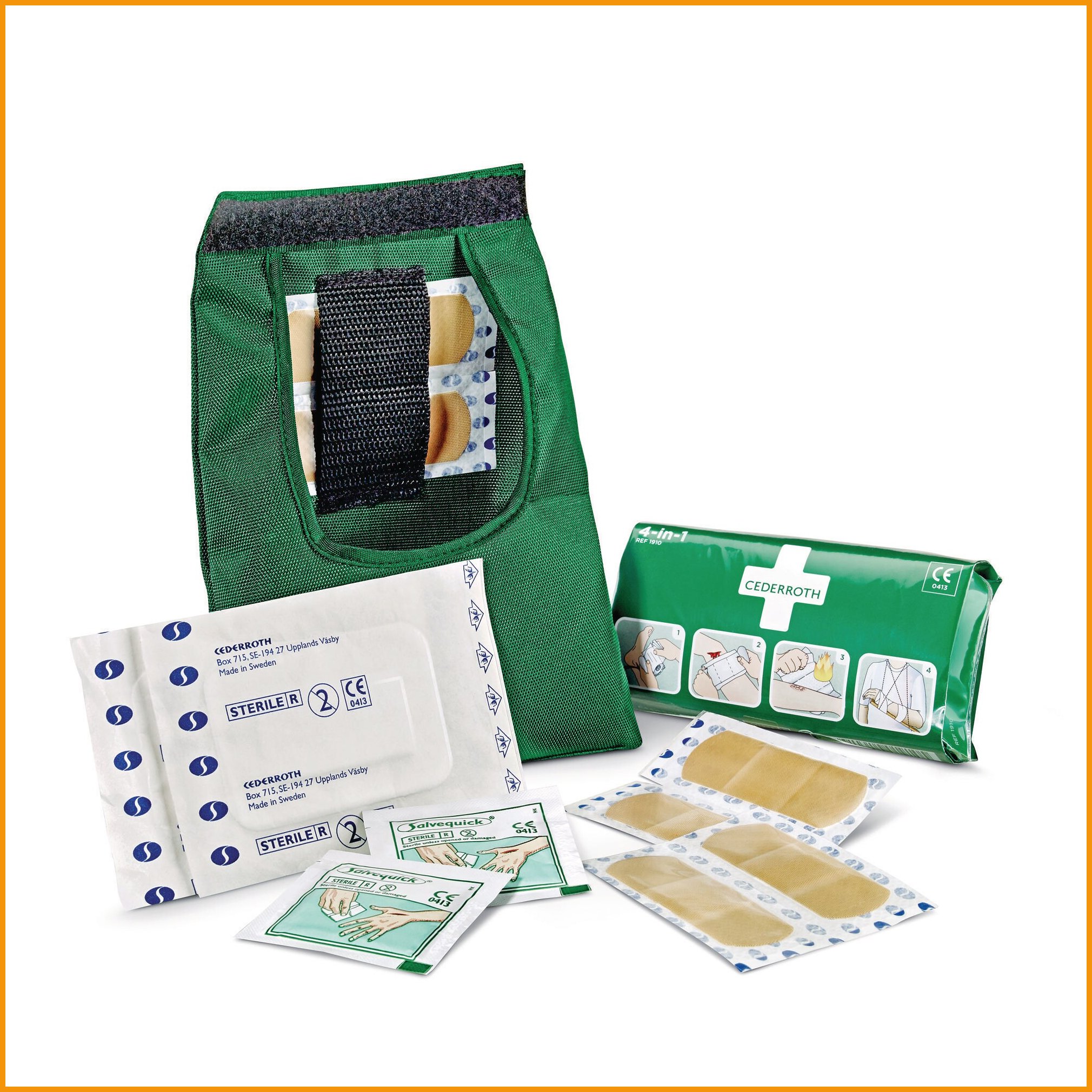 Cederroth-ensiapulaukut sopivat ensiapuaseman täydentäjiksi aloilla, joilla ollaan paljon liikkeellä. pienen, mutta hyvin varustetun tarrakiinnitteisen laukun ulkokuori on valmistettu kestävästä nylonkankaasta. kaikki tuotteet on varustettu selkeillä kuvallisilla ohjeilla.Ensiapupakkauksen sisältö: