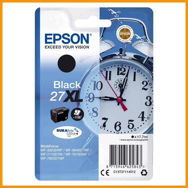 Epson 27XL -mustekasetti Epson-tulostimeesi. Valmistajan alkuperäisiä osia käyttämällä varmistat laitteen saumattoman toiminnan ja tuotat laadukkaita tulosteita. Epson panostaa jatkuvasti mustekasettien tuotekehitykseen. Epson - luotettava, edullinen ja korkealaatuinen.Tuotenimi: Epson 27XL