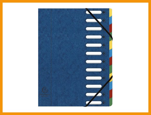 Exacomptan 12-osaisessa esijärjestimessä on paljon tilaa tarjoava haitariselkä, käytännölliset välilehdet ja napakka kuminauhasuljenta kulmien yli. Kannet ovat erittäin vahvaa (425 g / 0,55 mm) kartonkia ja sisätaskutkin vankat (225 g).