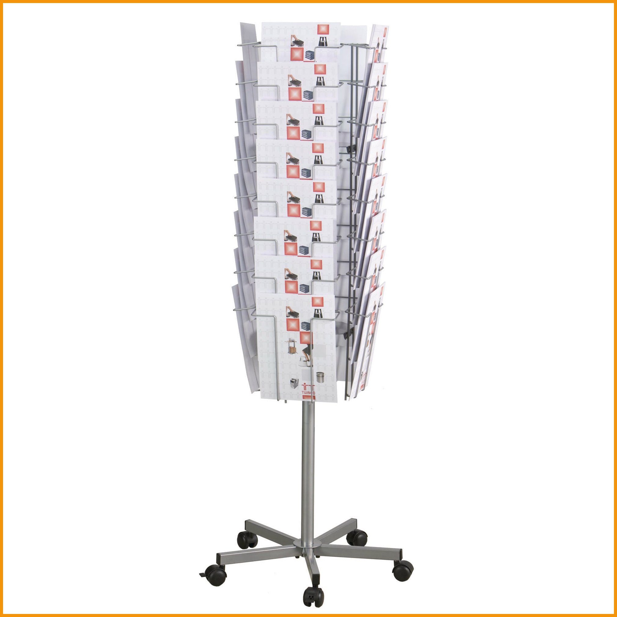 Esiteteline Twinco Agenda on vahva ja vakaa metallinen esitekaruselli pyörillä. Esitetelineessä on 32 lokeroa A4 esitteille. Esitetelineen mitat ovat korkeus 148 cm ja halkaisija 52 cm.