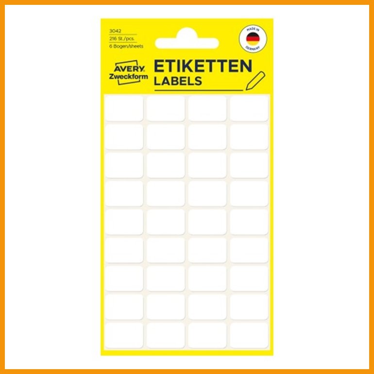 Averyn pysyvällä liimalla varustetut, käsinkirjoitukseen tarkoitetut etiketit ovat ihanteellinen tapa merkitä työvälineet, kalenterit, hyllynreunat jne. Etiketit on valmistettu FSC-sertifioidusta kuidusta ja valkaistu ilman klooria.