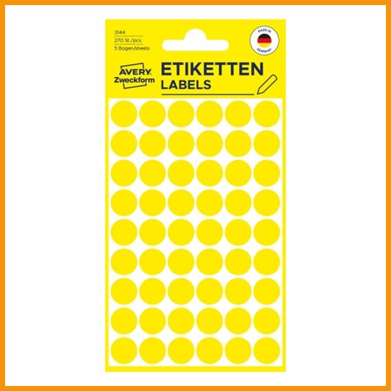 Etiketti Avery 3144 ø 12 mm pyöreä keltainen /270 hinta 1,14€