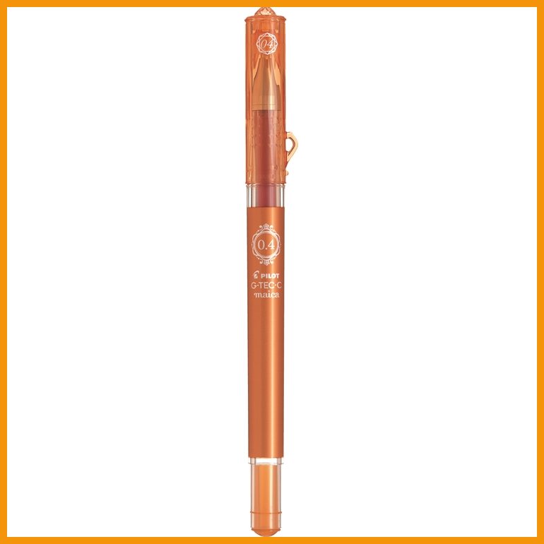 Elegantti Pilot G-Tec-C Maica -kuulakärkikynä on omiaan tarkkaan työskentelyyn. Kynässä on musteen värinen runko, erittäin kapea neulakärki ja kevyesti juokseva, sottaamaton ja voimakasvärinen muste. Korkissa on taskuklipsin lisäksi myös reikä, josta kynän voi ripustaa esimerkiksi koukkuun tai ketjuun.Musteen väri: oranssi