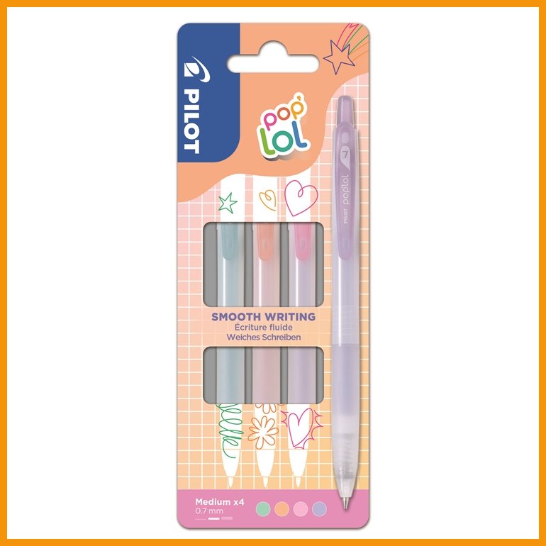 Pilot Pop'lol on medium-kärjellä varustettu japanilainen geelikynä, joka soveltuu niin kirjoittamiseen kuin piirtämiseenkin. Kynässä on paksu ja tasaisesti levittyvä muste, joka tuottaa peittävän ja siistin jäljen. Kynä jättää kirkkaat ja elävät värit myös tummalle paperille, ja kuivuu nopeasti ilman tahriintumista.Rungossa on kuminen otealue, painomekanismi sekä taskuklipsi.