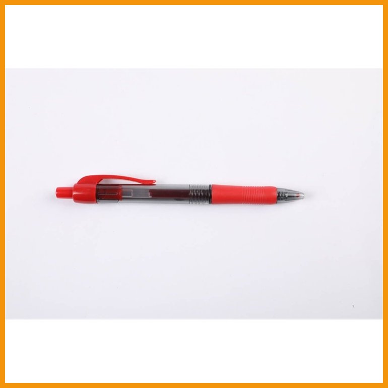 Painomekanismilla ja taskupidikkeellä varustetun punaisen geelikynän rungossa on miellyttävä kuminen otepinta. Kynän riittoisa muste kuivuu nopeasti, ei suttaa ja jättää siistin ja tasaisen jäljen.Uudelleentäytettävän kynän runko on valmistettu vähintään 50-prosenttisesti kierrätysmuovista.
