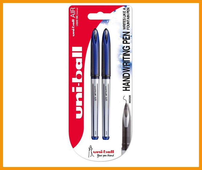 Uni-Ball Air -kuulakärkikynässä on erittäin kevyesti liukuva ja välittömästi kuivuva Liquid Ink -muste, joka tekee kynästä erinomaisen valinnan mm. vasenkätiselle. Kynän innovatiivisen Smart Tip -teknologian ansiosta voi kirjoittaa sillä yhtä sujuvasti missä tahansa kulmassa.Musteen väri: sininen