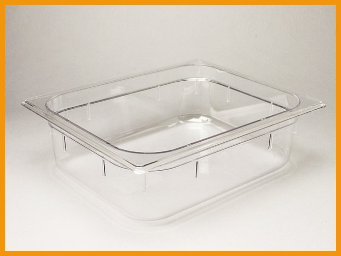 Inoxmacelin kirkkaasta PC-muovista valmistettu GN-astia (1/2-100) on tarjoiluastia ammattikäyttöön. Pinottava astia kestää sekä konepesun että pakastuksen.