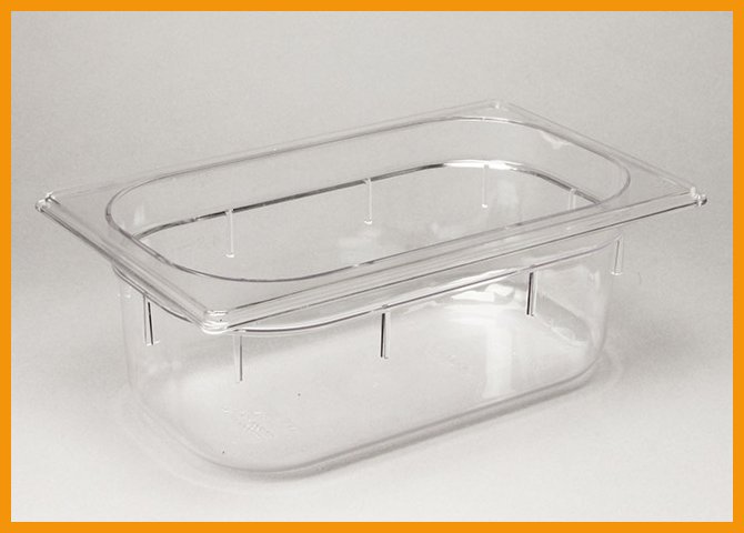 Inoxmacelin kirkkaasta PC-muovista valmistettu GN-astia (1/4-100) on tarjoiluastia ammattikäyttöön. Pinottava astia kestää sekä konepesun että pakastuksen.