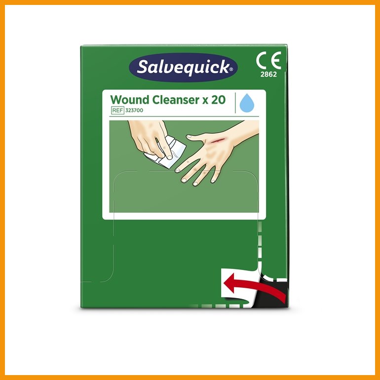 Salvequick-haavapyyhe korvaa vanun ja puhdistusaineen haavan puhdistamisessa. Pyyhkeen puhdistusaineena on steriili, fysiologinen keittosuolaliuos (0,9 % NaCl).Pakkauksessa on 20 haavapyyhettä (11 x 12 cm).