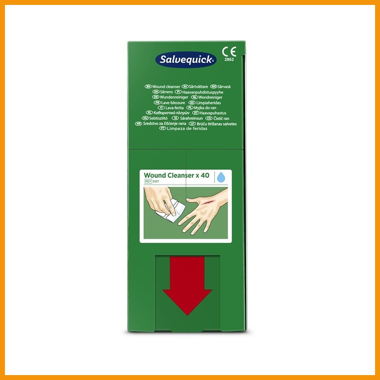 Salvequick 3227 on kuitukankainen ja steriili haavapyyhe, jonka puhdistusaineena toimii 0,9 % fysiologinen keittosuolaliuos. Kätevä ja helppokäyttöinen haavanpuhdistuspyyhe korvaa vanun ja puhdistusaineen.Pakkaus sopii Cederrothin haavanhoitoautomaatteihin 51011006 ja 51011009, varastokaappiin 290900 ja haavanhoitopisteeseen 190900.