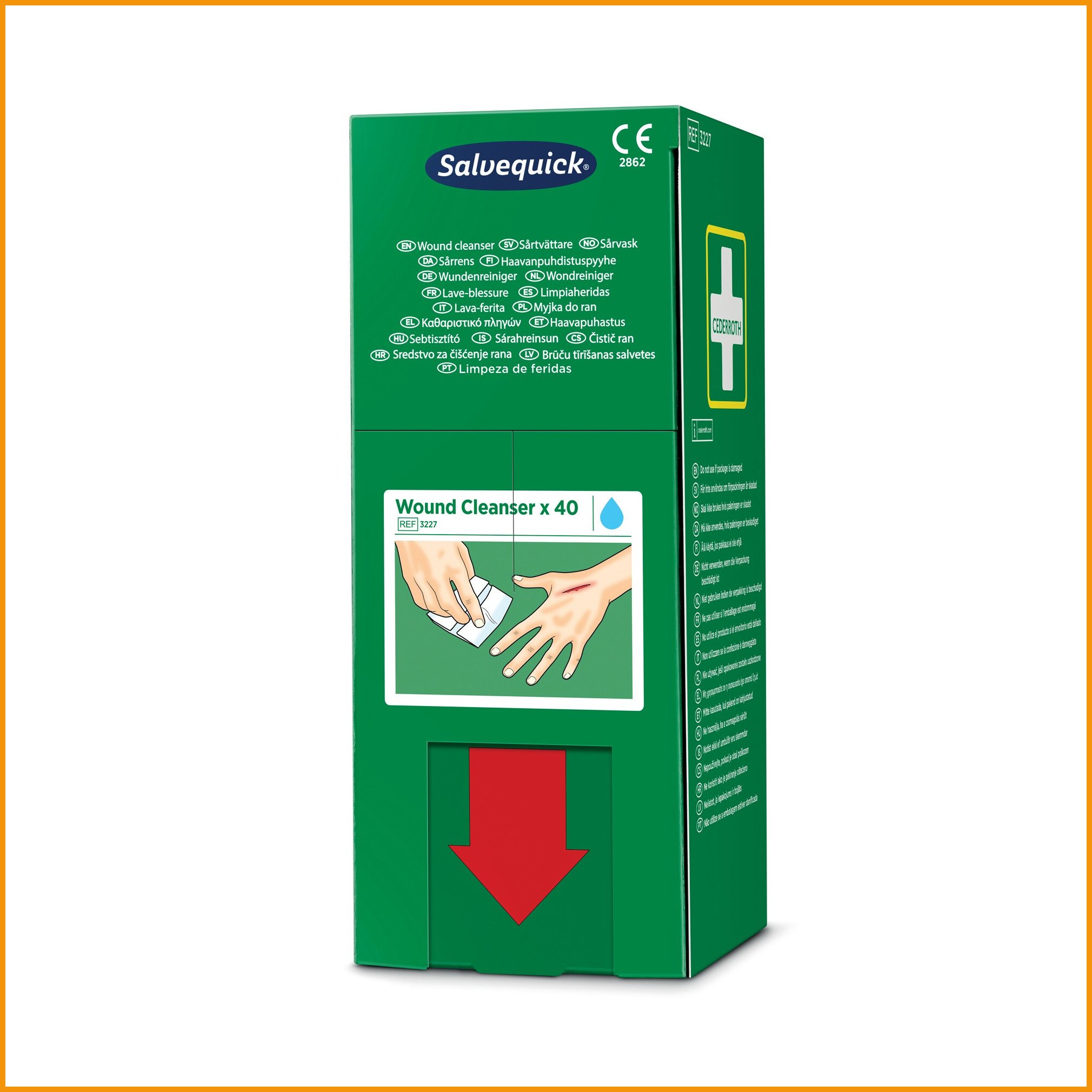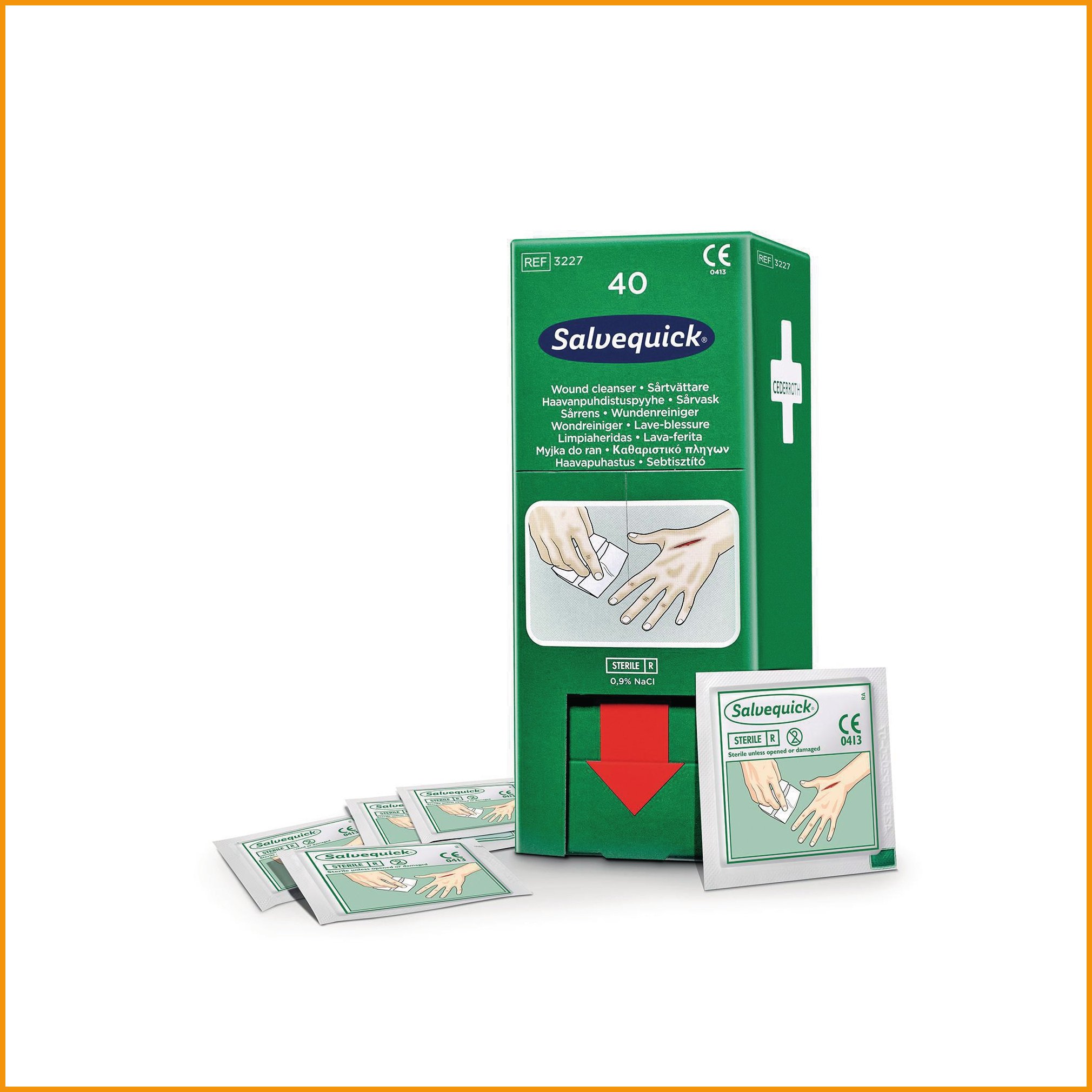 Salvequick 3227 haavanpuhdistuspyyhe on steriili, yksittäispakattu ratkaisu haavojen hoitoon. täydennyskasetti sopii salvequick haavapyyheautomaattiin. sisältö: • 40 x haavapyyheHaavapyyhkeet toimitetaan 40 kappaleen erissä.