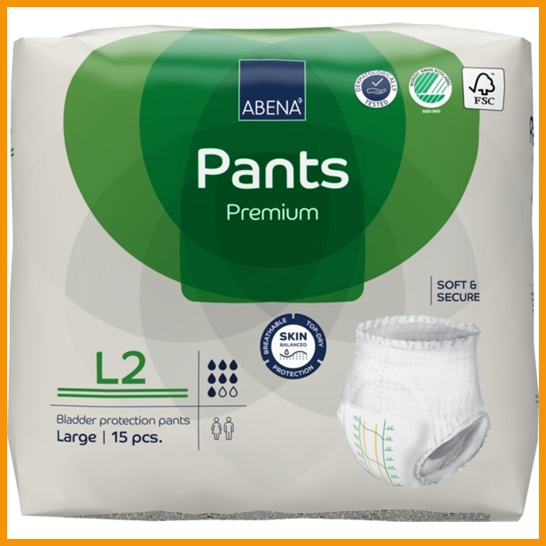 ABENA Pants on Premium-laatuinen ja imukykyinen housuvaippa, jota voidaan käyttää tavallisten alushousujen tapaan. Luotettavasti ja tarkasti istuva vaippa on valmistettu hengittävästä ja erittäin pehmeästä materiaalista, joka sopii myös aktiiviseen elämäntyyliin.Imukykyinen ydin pitää altistuneen ihoalueen miellyttävän kuivana useamman virtsaamiskerran jälkeenkin, ja sekä pituus- että pystysuuntaiset vuotosuojat yhdessä joustavien jalanteiden kanssa takaavat 360 asteen suojan ohivuotoja vastaan. Iho pysyy suojattuna ja sen pH-tasapaino luonnollisena. Vaipan hajunsulkujärjestelmä minimoi myös epämiellyttävät hajut.