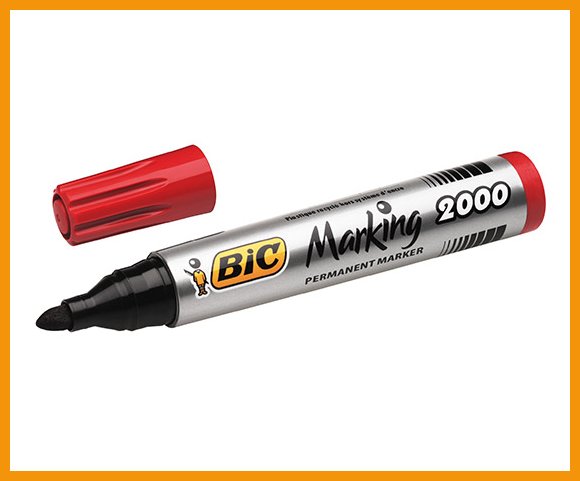 Bic Marking 2000 on monipuoliseen käyttöön suunniteltu punainen huopakynä, jolla kirjoitat lähes kaikille pinnoille, kuten paperille, puulle, muoville, metallille ja lasille. Tuote on valmistettu 51-prosenttisesti kierrätysmateriaalista.Alkoholipohjainen pysyvä muste on xyleenitöntä, tolueenitonta ja lähes hajutonta. Erittäin varmatoiminen kynä ei kuivu, vaikka unohtaisit korkin auki jopa kolmeksi viikoksi.