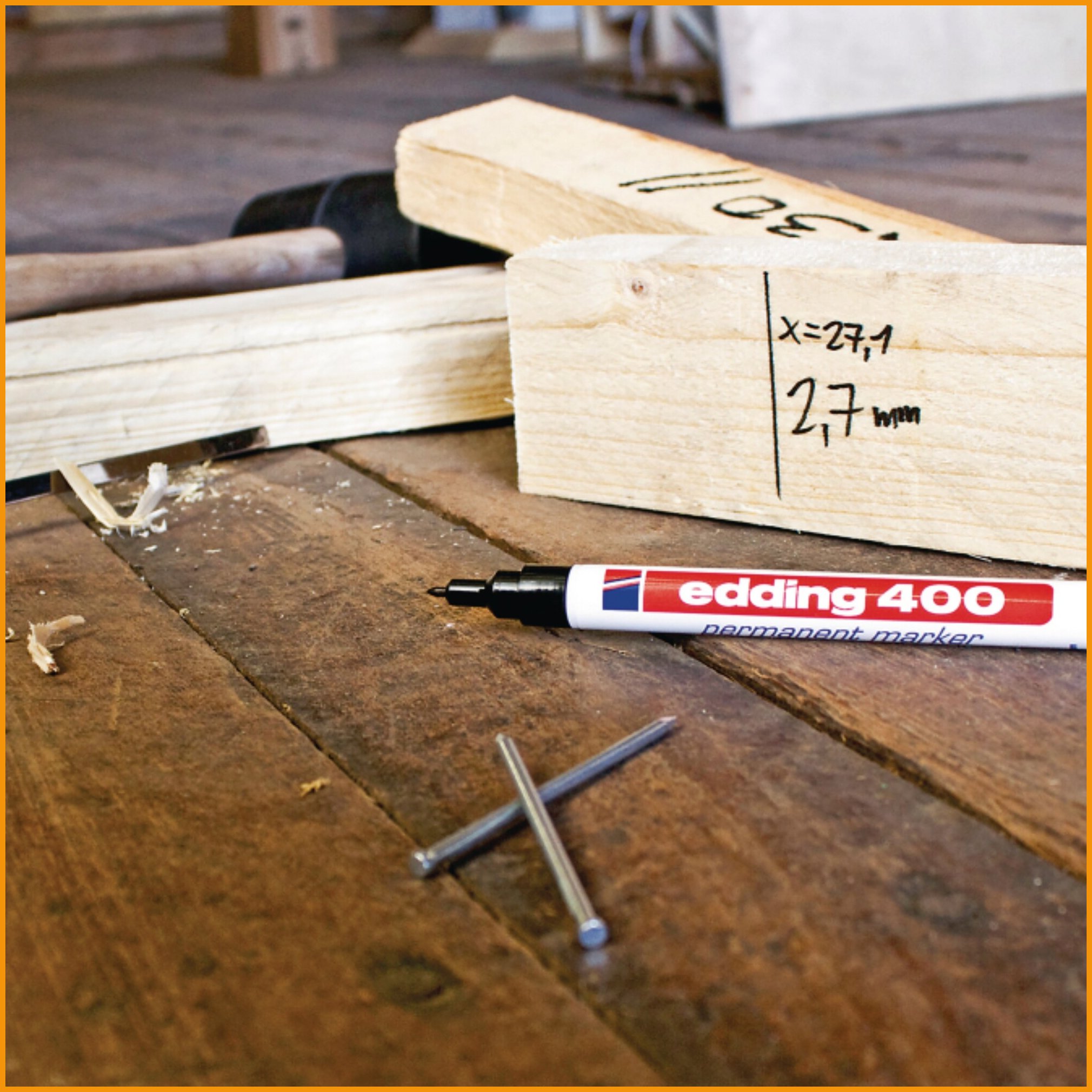 Edding 400 on alumiinirunkoinen, pysyvämusteinen musta huopakynä kapealla ja pehmeällä kärjellä. sen lähes hajuton, nopeasti kuivuva muste tarttuu useimmille pinnoille, kuten metalli-, lasi- ja muovipinnoille. korkissa on muovinen klipsi. ei sisällä xyleeniä eikä tolueenia. pyöreä kärki, viivan leveys 1 mm. Huopakynien minimitilaus 1 paketti = 10 kpl. Tukkupakkauksessa 500 kpl.Huopakynä Edding 400 pyöreä 1 mm permanent musta on korkealaatuinen toimistotuote, jonka verkkokauppatilauksen toimitus perille kestää 1-2 päivää. Tiedäthän, että toimitus on ilmainen yli 140 € hintaisille verkkokauppa ostoksille! Meiltä voit tilata laskulla ja ilman rekisteröitymistä.