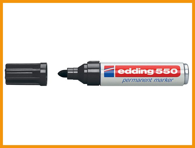 Edding 550 on kompaktin kokoinen musta huopakynä monipuoliseen ja vaativaan käyttöön. Kynässä on kestävä, 100-prosenttisesti kierrätysalumiinista valmistettu runko ja muovinen suojakorkki. Mustesäiliö voidaan täyttää uudelleen, ja kynään on saatavana myös vaihtokärkiä.Pysyvä ja hajuton muste on sekä veden- että valonkestävää eikä sisällä tolueenia tai xyleeniä. Muste tarttuusiististi kaikenlaisille pinnoille, kuten paperille, kartongille, muoville, metallille, puulle, nahalle ja lasille.