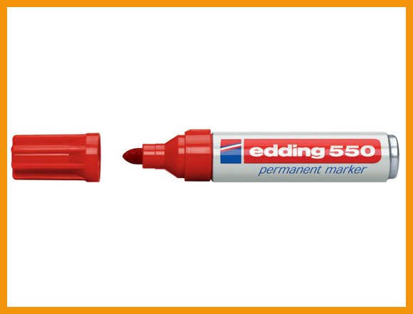 Edding 550 on kompaktin kokoinen punainen huopakynä monipuoliseen ja vaativaan käyttöön. Kynässä on kestävä, 100-prosenttisesti kierrätysalumiinista valmistettu runko ja muovinen suojakorkki. Mustesäiliö voidaan täyttää uudelleen, ja kynään on saatavana myös vaihtokärkiä.Pysyvä ja hajuton muste on sekä veden- että valonkestävää eikä sisällä tolueenia tai xyleeniä. Muste tarttuusiististi kaikenlaisille pinnoille, kuten paperille, kartongille, muoville, metallille, puulle, nahalle ja lasille.